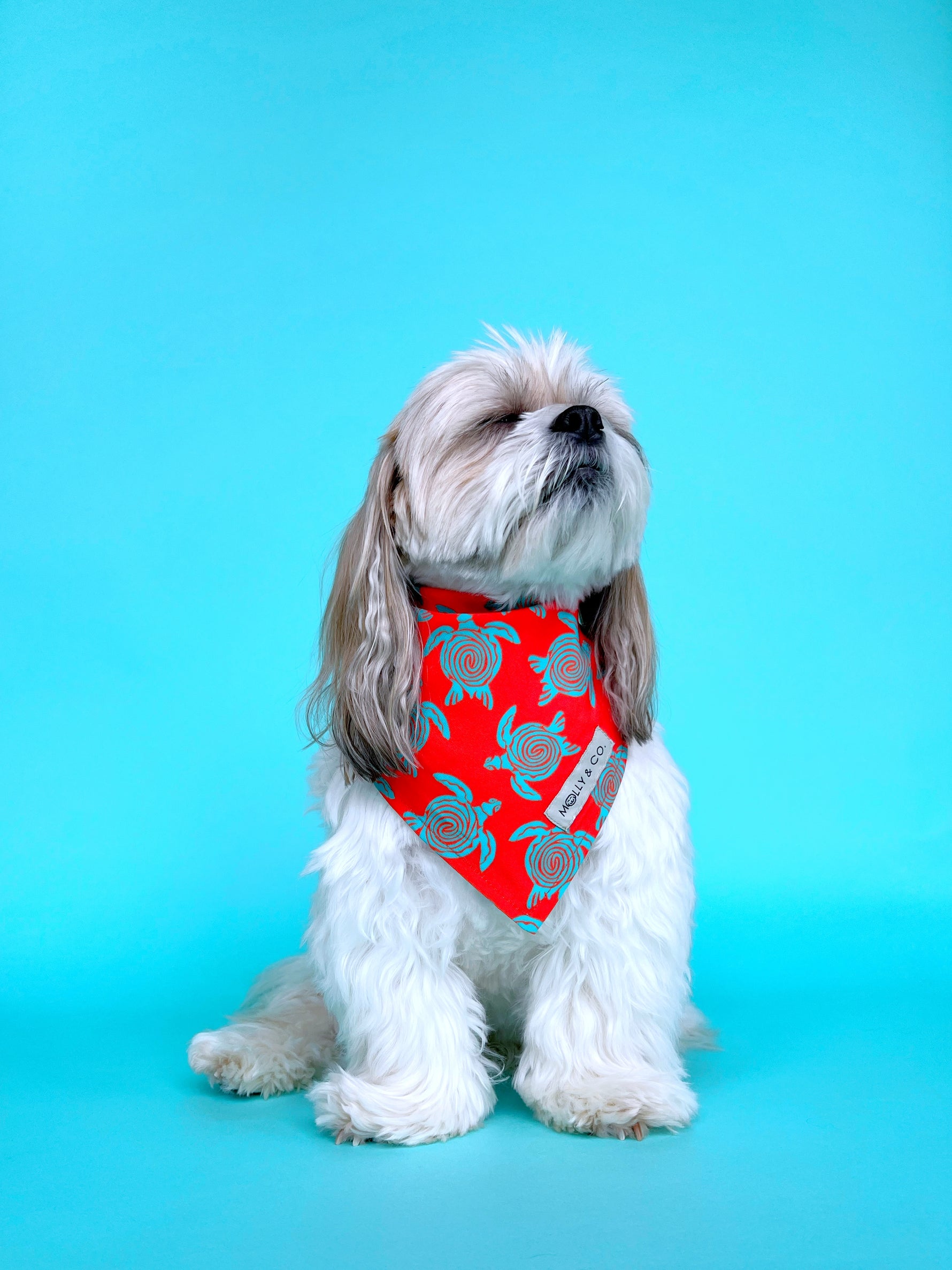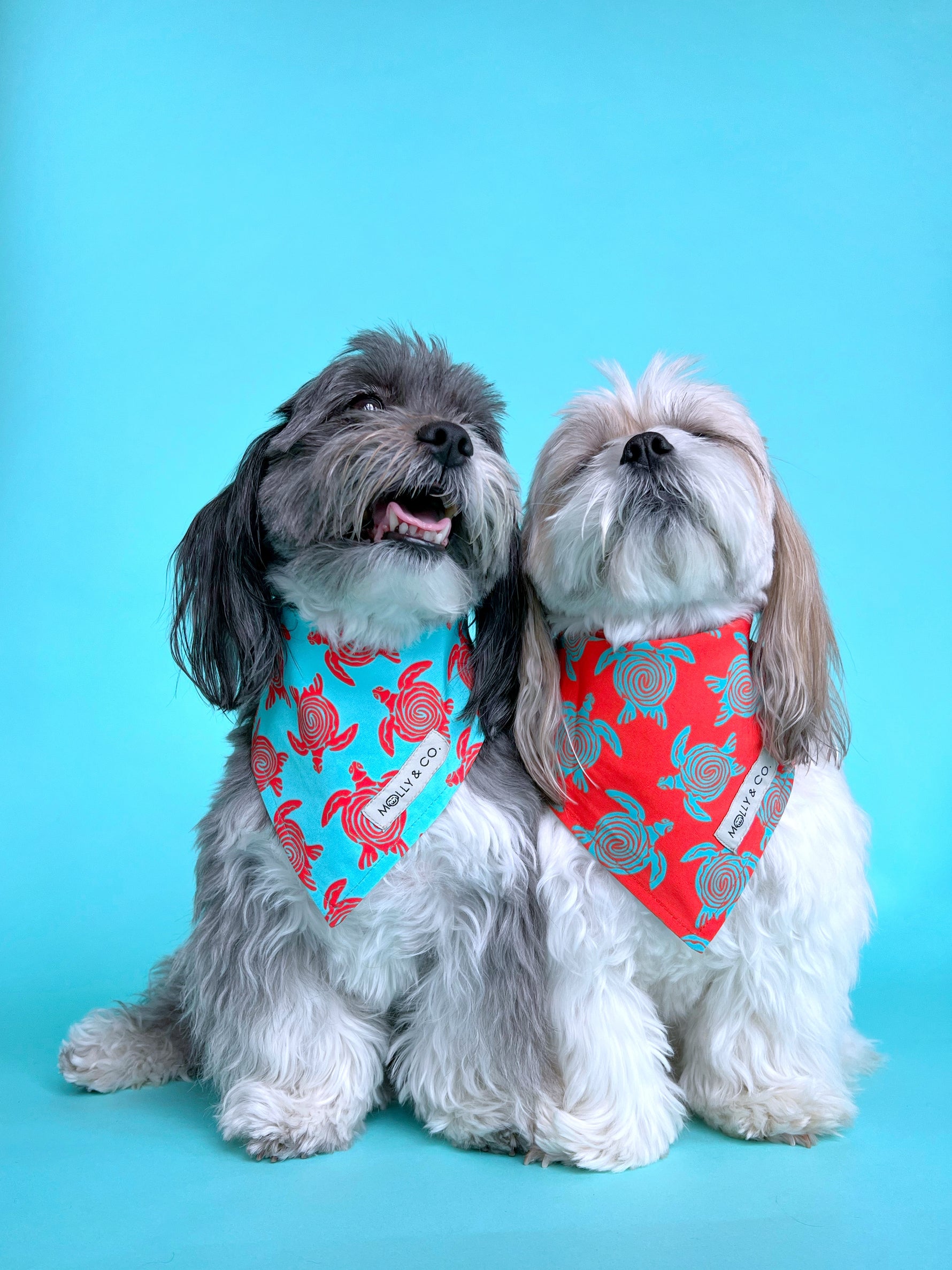 Add an extra dose of style and cuteness to your dog with our beautiful Turtle Trails bandana. This bandana features two Molly & Co. hand drawn original designs.