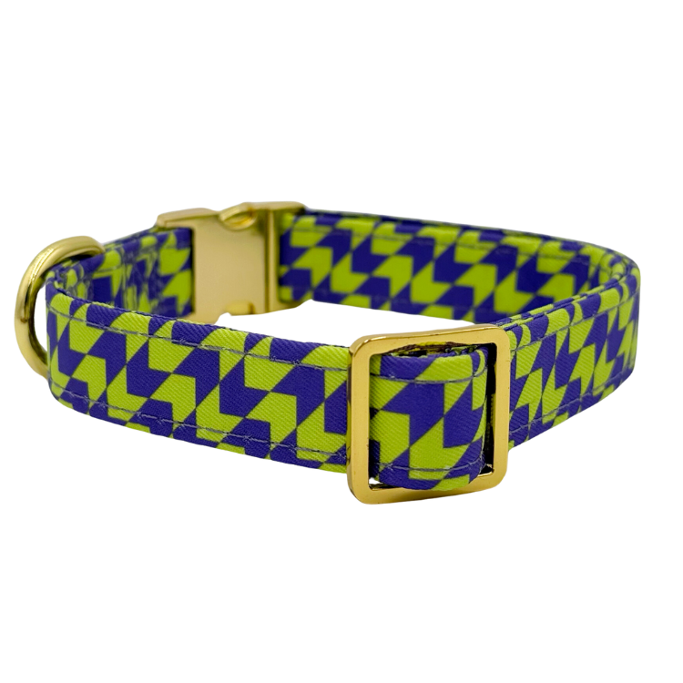 Bring a splash of retro fun to your pup’s style with our Fetch Master Dog Collar! With its 90s cartoon-inspired design, this collar features a vibrant lime green and purple geometric pattern that’s perfect for adding a bit of nostalgia to every walk.