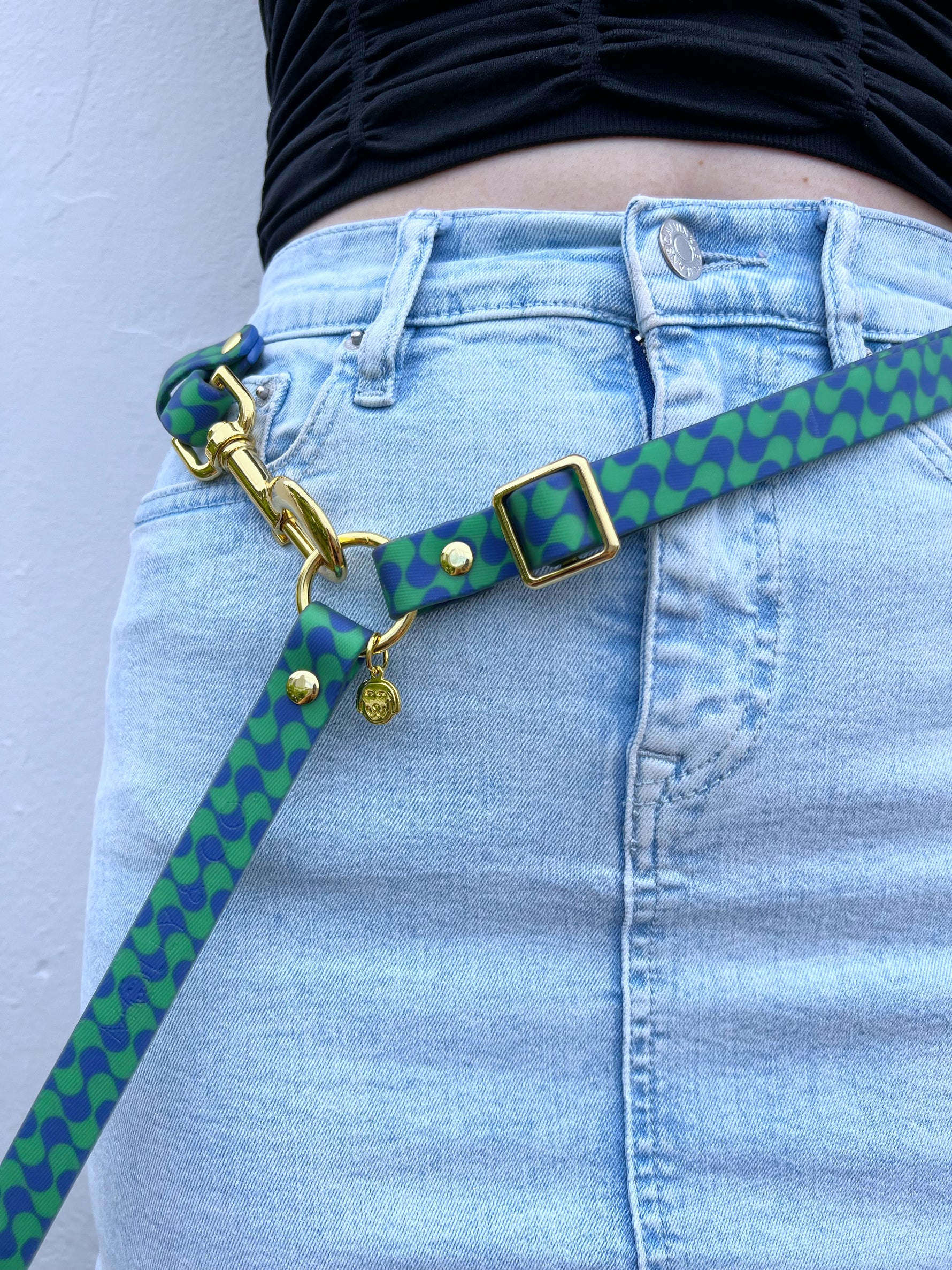 Introducing our Forest Handsfree Splashproof Leash, featuring the iconic swirls of our best-selling Forest Collection! With its vibrant blue and green hues, this leash offers both style and functionality for your outdoor adventures. Enjoy the convenience of hands-free walking with the adjustable design, allowing you to wear it comfortably around your waist or across your body. Explore the great outdoors with your pup in style while still maintaining control and comfort.