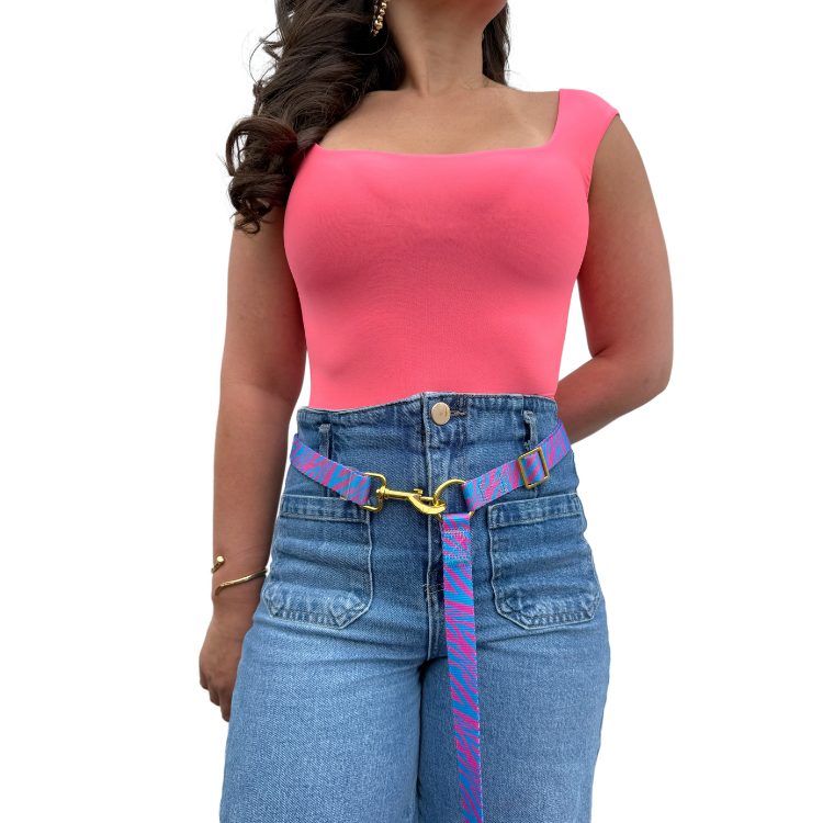 Stay chic and hands-free with our Malibu Doll Handsfree Leash! This leash features an exclusive Molly & Co. design with a bold pink and aqua tiger print that makes a statement. Whether worn around your waist or across your body, it’s perfect for fashion-forward dog parents on the go.