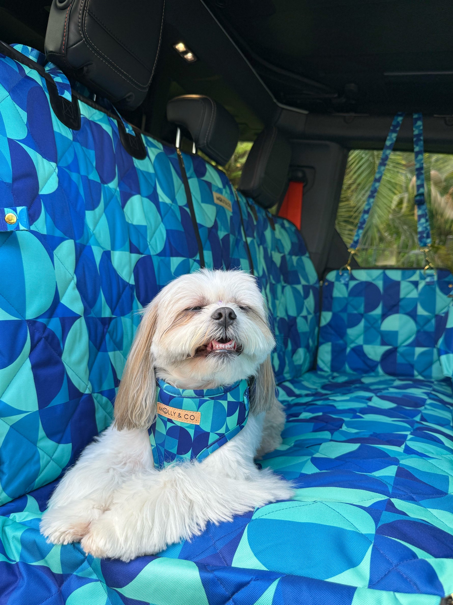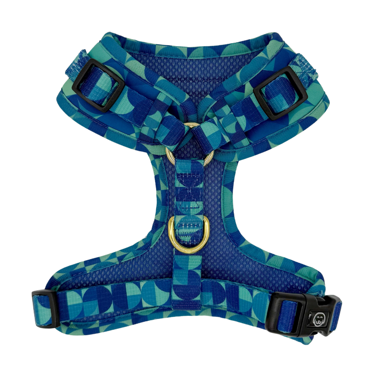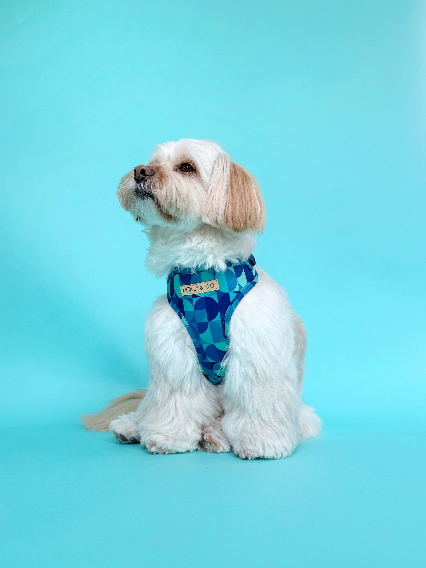 Sunshine, salt air, and the perfect pop of blue — our Milos Adjustable Dog Harness brings summer elegance to every walk. With bright ocean-inspired shades and our signature geometric print, this lightweight harness is made for pups who were born to shine.