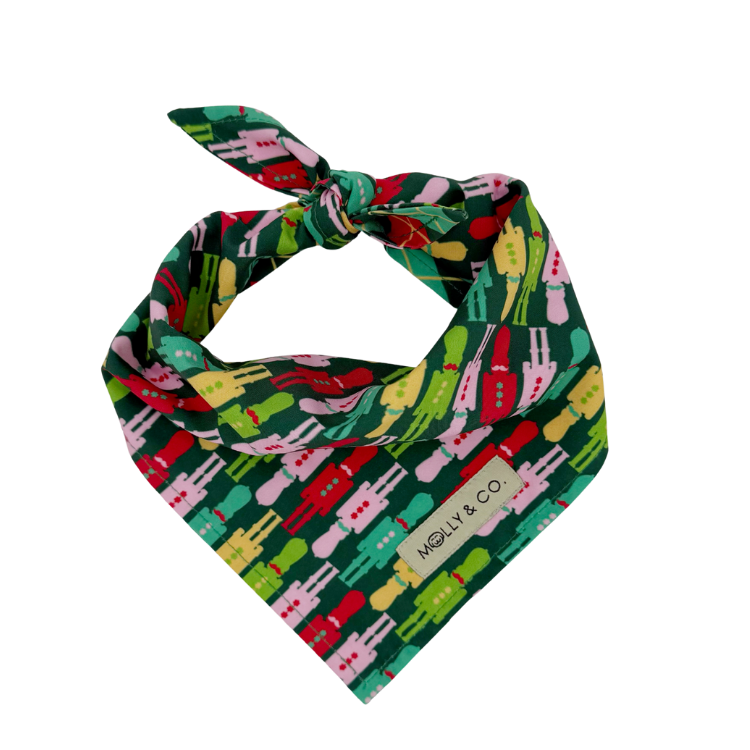 Evergreen Argyle + Nutcracker - Reversible Dog Bandana