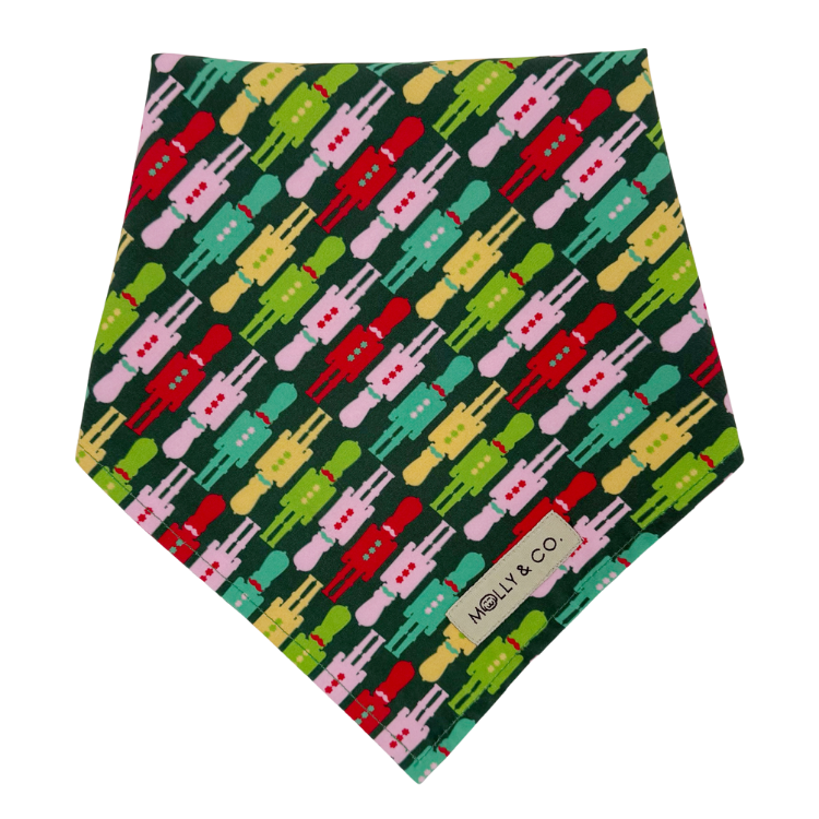 Two festive looks, one instant upgrade. The Evergreen Argyle + Nutcracker Reversible Bandana flips from classic winter argyle to a playful Nutcracker print. Perfect for holiday photos, parties, and cozy cocoa runs. Switch sides for a fresh vibe without changing the outfit.