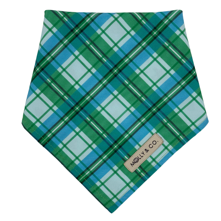 Give your pup a festive, stylish twist with our Northern Lights + Deck the Halls Reversible Bandana! Featuring two cozy winter-themed designs, this bandana brings out the best of the season in light green plaid on one side and cheerful holiday-inspired colors on the other. Perfect for pets who love to celebrate all winter long!