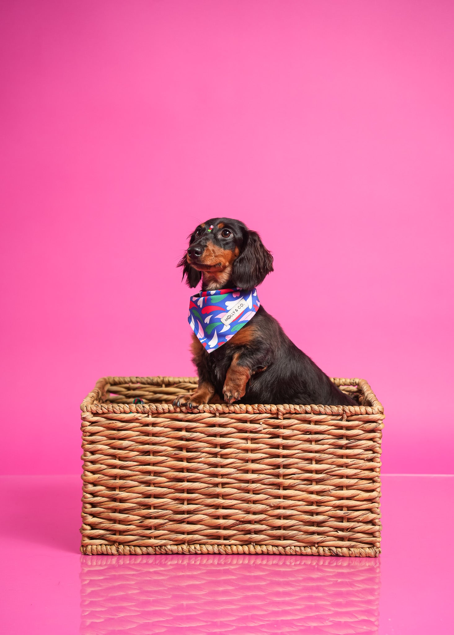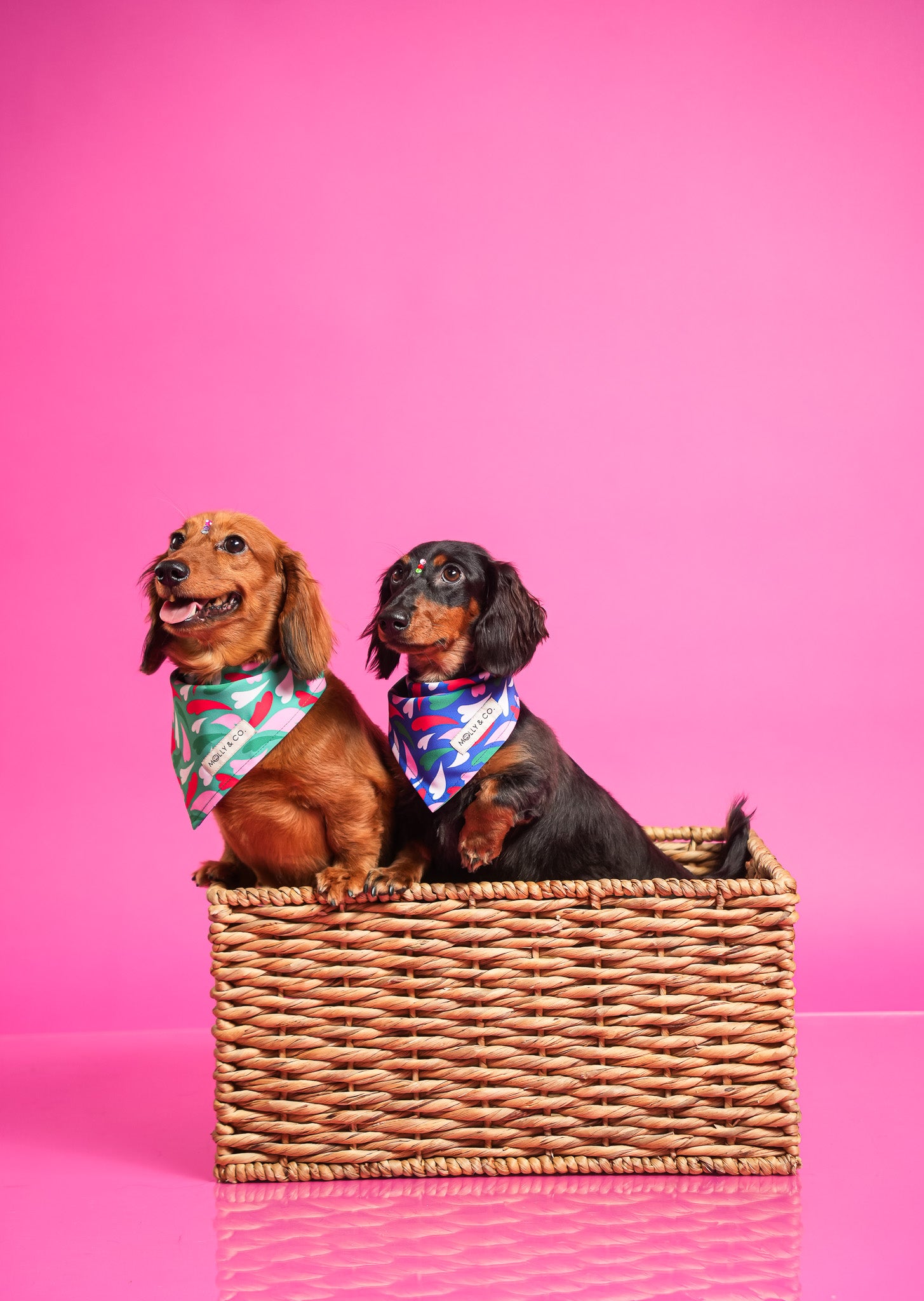 Add an extra dose of style and cuteness to your dog with our beautiful Amore bandana. This bandana features two Molly & Co. hand drawn original designs.