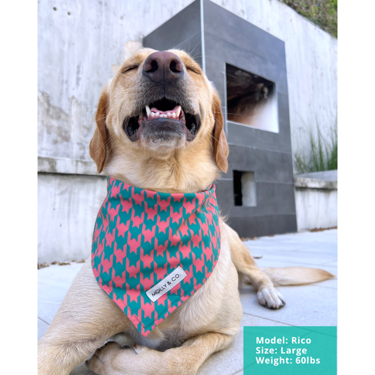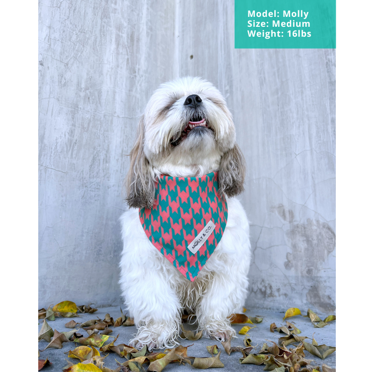 Your pup will look super classy and fashionable with our Houndstooth bandana. This bandana features a Molly & Co. hand drawn original design.