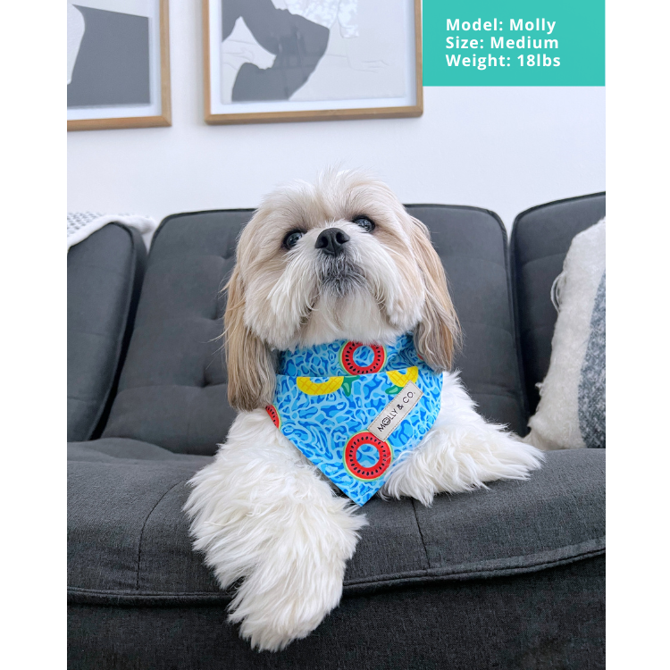 Did someone say pool party? Add an extra dose of style and cuteness to your dog with this beautiful pool bandana. This bandana features two Molly & Co. hand drawn original designs.