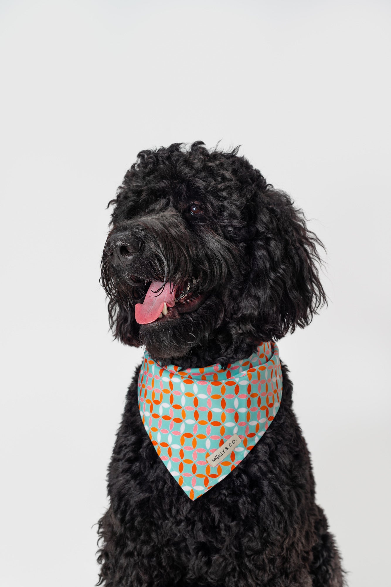 Your pup will look super classy and fashionable with our Santorini bandana. This bandana features a Molly & Co. hand drawn original design.