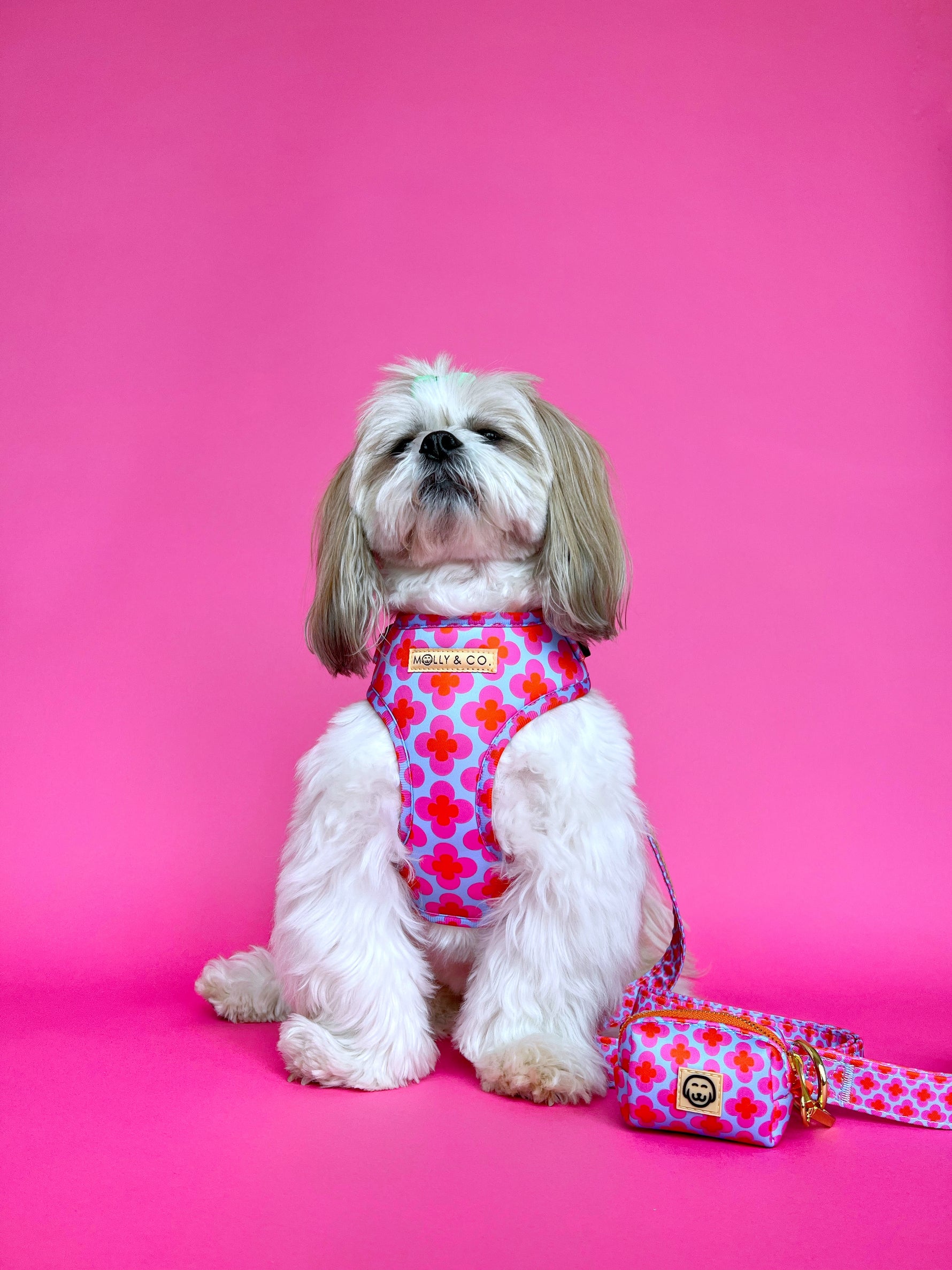 Your pup will be ready to be featured on the cover of Vanity Fur with our Venezia adjustable harness! This harness gives your pup a Molly & Co. original design that is fun, colorful and fashionable.