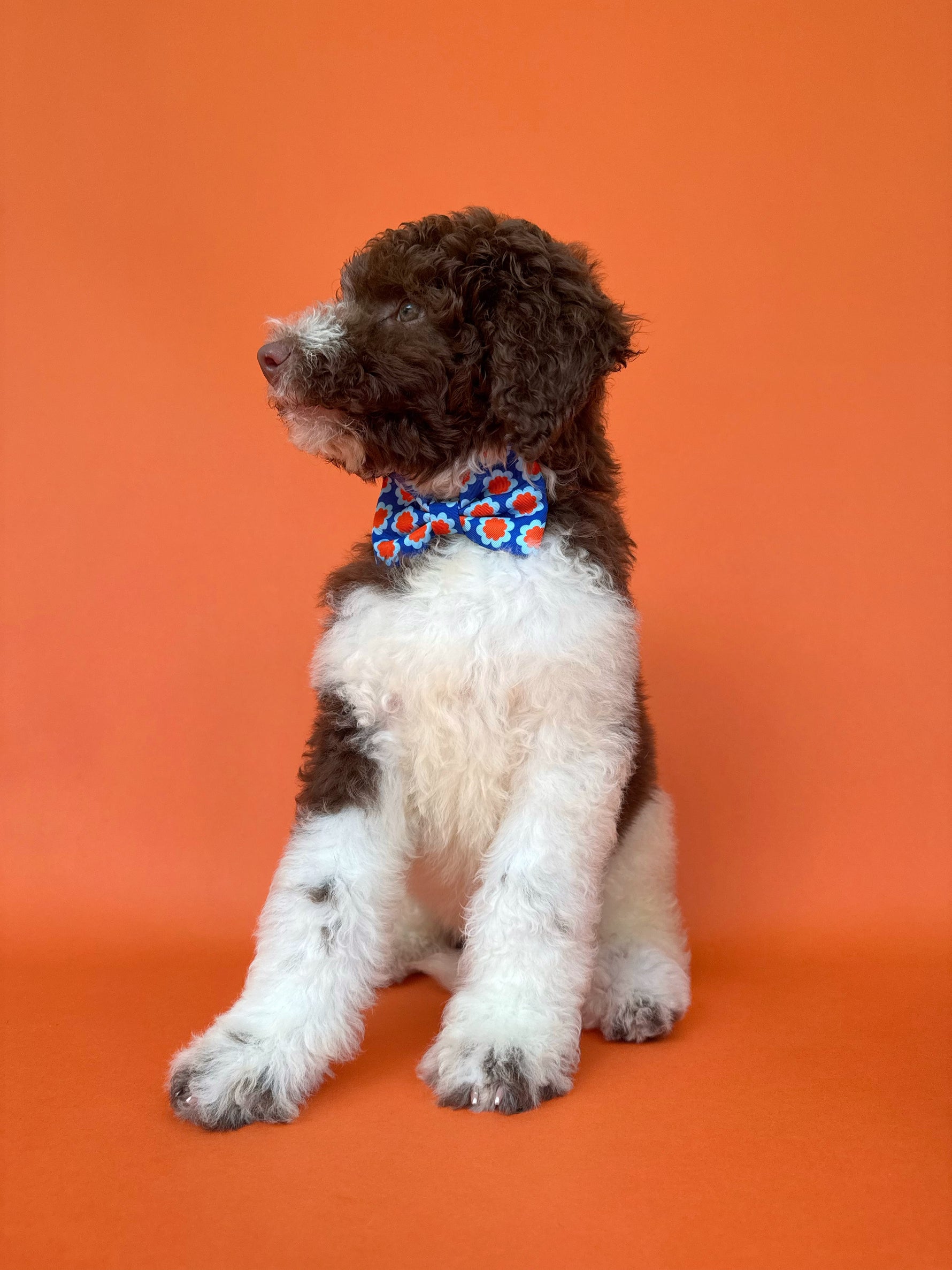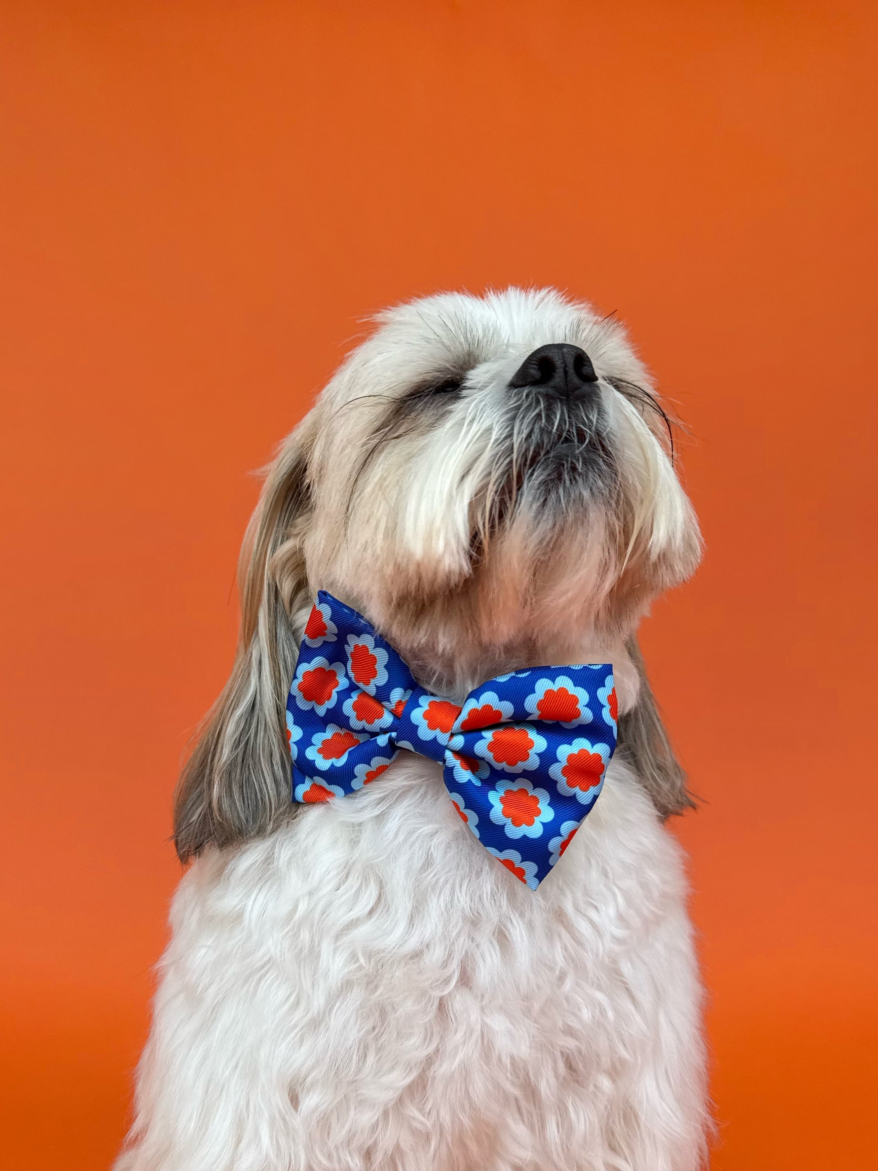 Let your pup steal the spotlight with our Sorrento Dog Bowtie! Featuring vibrant blue and orange geometric florals, this bowtie adds a fresh Mediterranean touch to any outfit. Whether it's for a casual stroll or a special occasion, this charming accessory is lightweight, easy to wear, and guaranteed to turn heads.