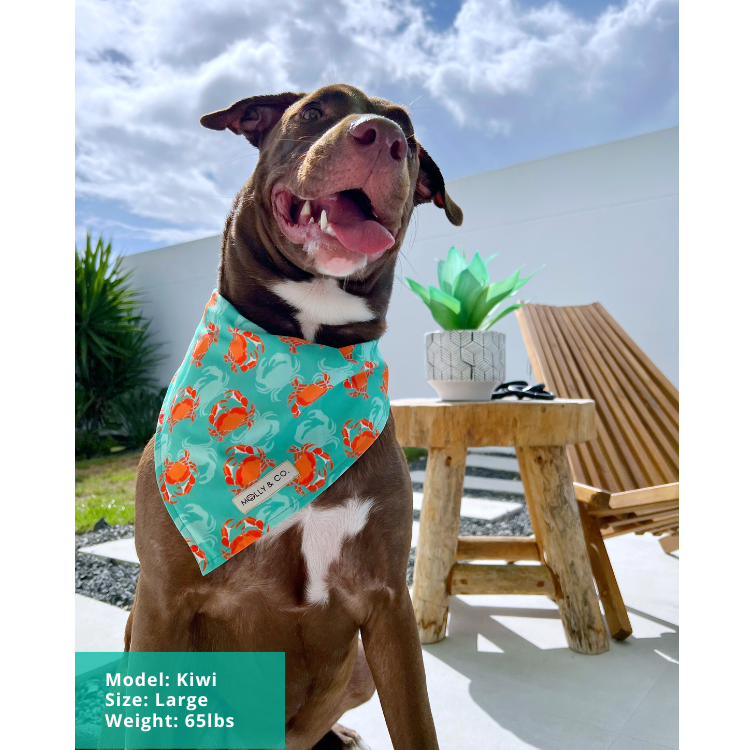 Add an extra dose of style and cuteness to your dog with our summer crab bandana. This bandana features a Molly & Co. hand drawn original design. If you love sea life like us, then look no further!