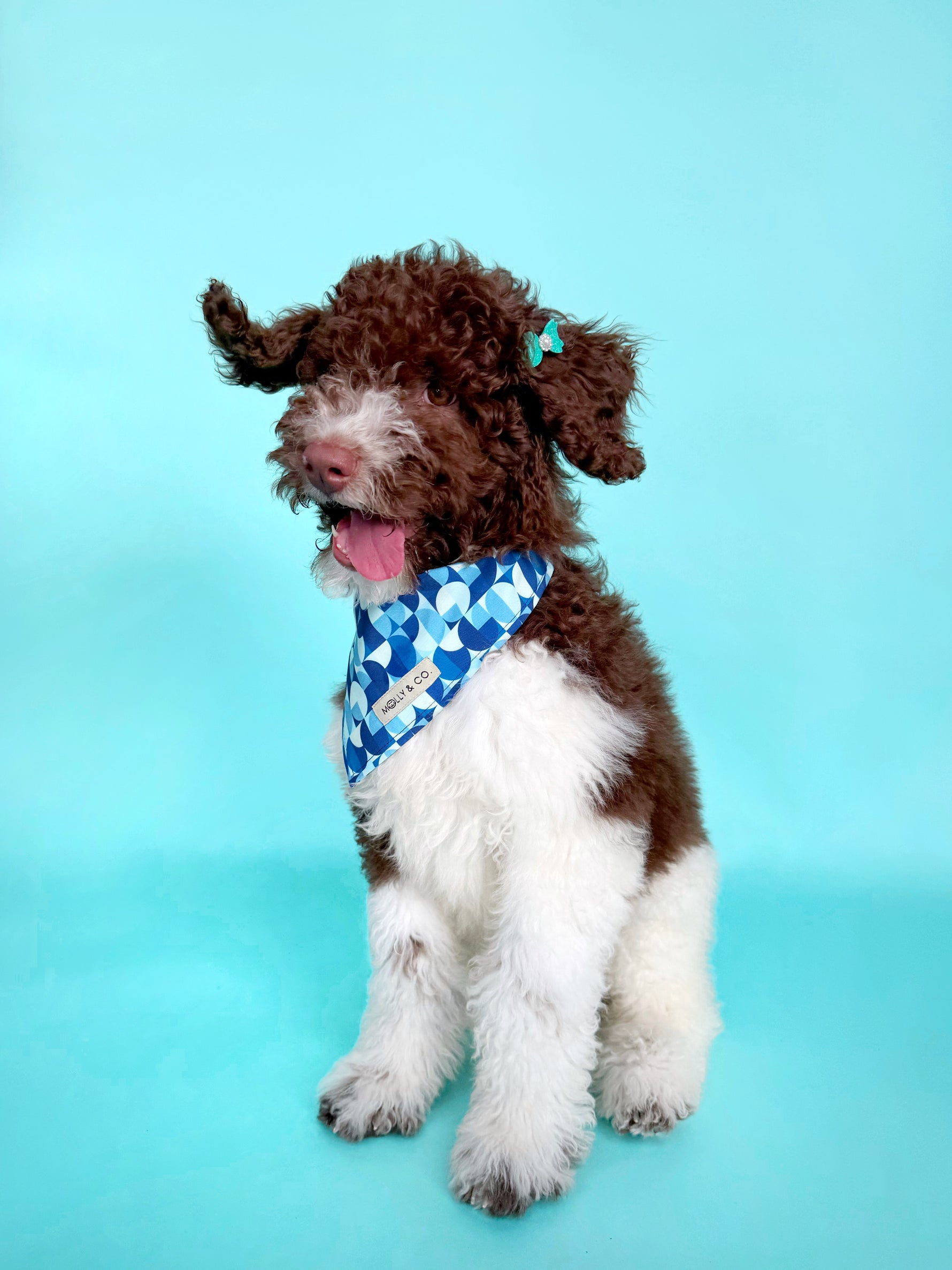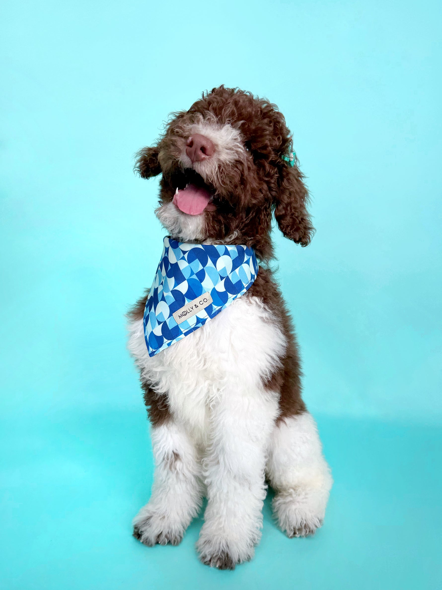 Add a touch of breezy elegance to your pup’s wardrobe with the Milos Dog Bandana. Featuring our signature geometric print in vibrant shades of ocean blue, this bandana is designed to evoke the feeling of summer escapes and coastal charm. Lightweight, stylish, and easy to tie—it's the perfect finishing touch for everyday adventures.