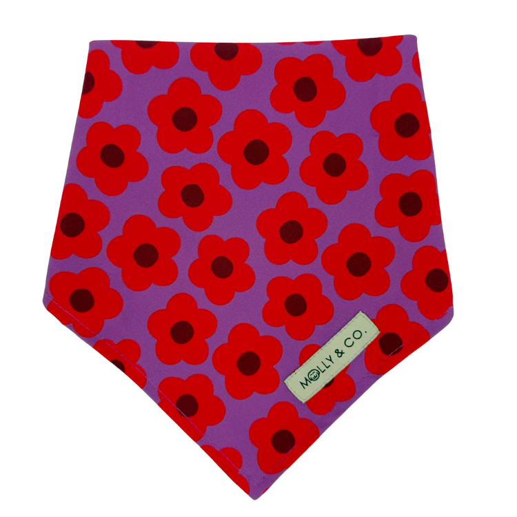 Two moods, one flawless accessory. The Mon Chéri Reversible Bandana features a bold floral on one side and a clean, modern geometric pattern on the other - for pups who like their looks as layered as their personalities. Just tie and go; the charm takes care of itself.