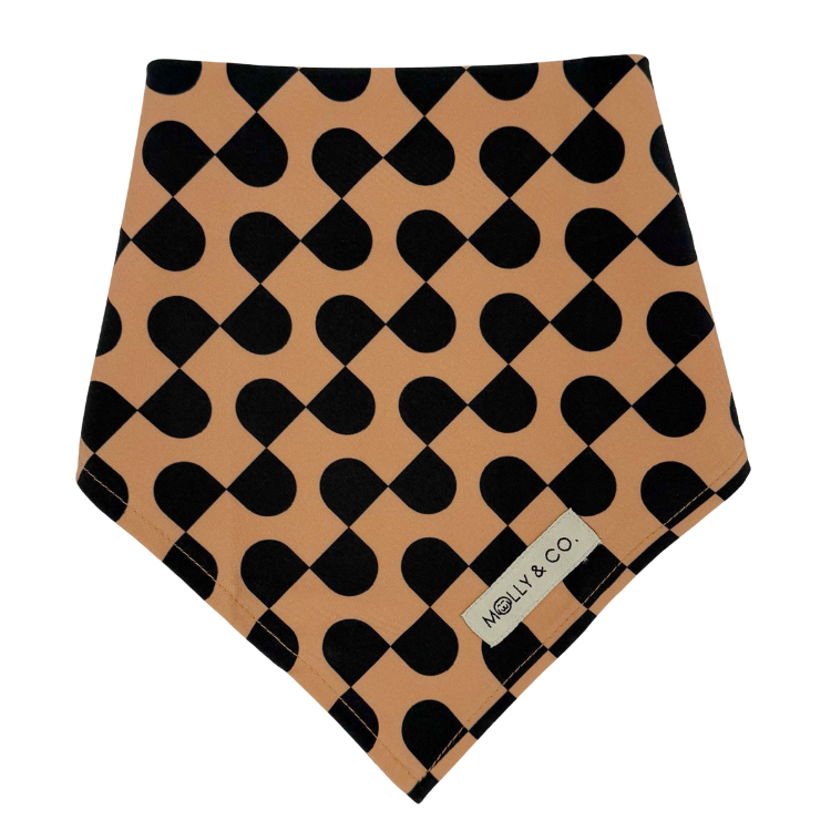 The Moonrise Dog Bandana is the finishing touch for pups with a polished wardrobe. Featuring our elegant black-and-cream geometric pattern, it looks chic in photos, casual walks, and every “meet the family” moment in between.