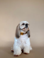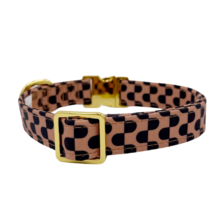 Elegant, modern, and walk-ready, the Moonrise Dog Collar is that effortlessly chic piece your pup can wear every day. The black-and-cream geometric pattern keeps it simple and refined, while our signature gold hardware adds just the right touch of luxe.