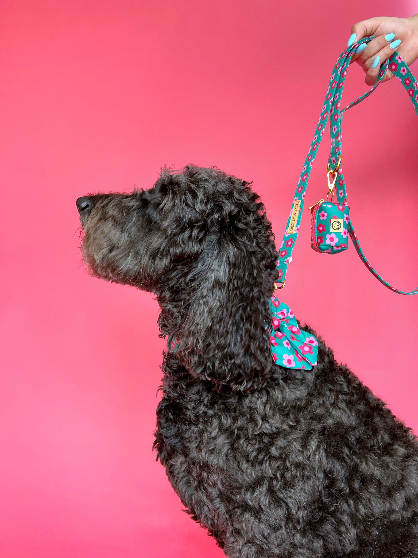 Both of you (dog mom and fur child) will look chic and stylish with our Petunia leash! This leash features a Molly & Co. hand drawn original design.