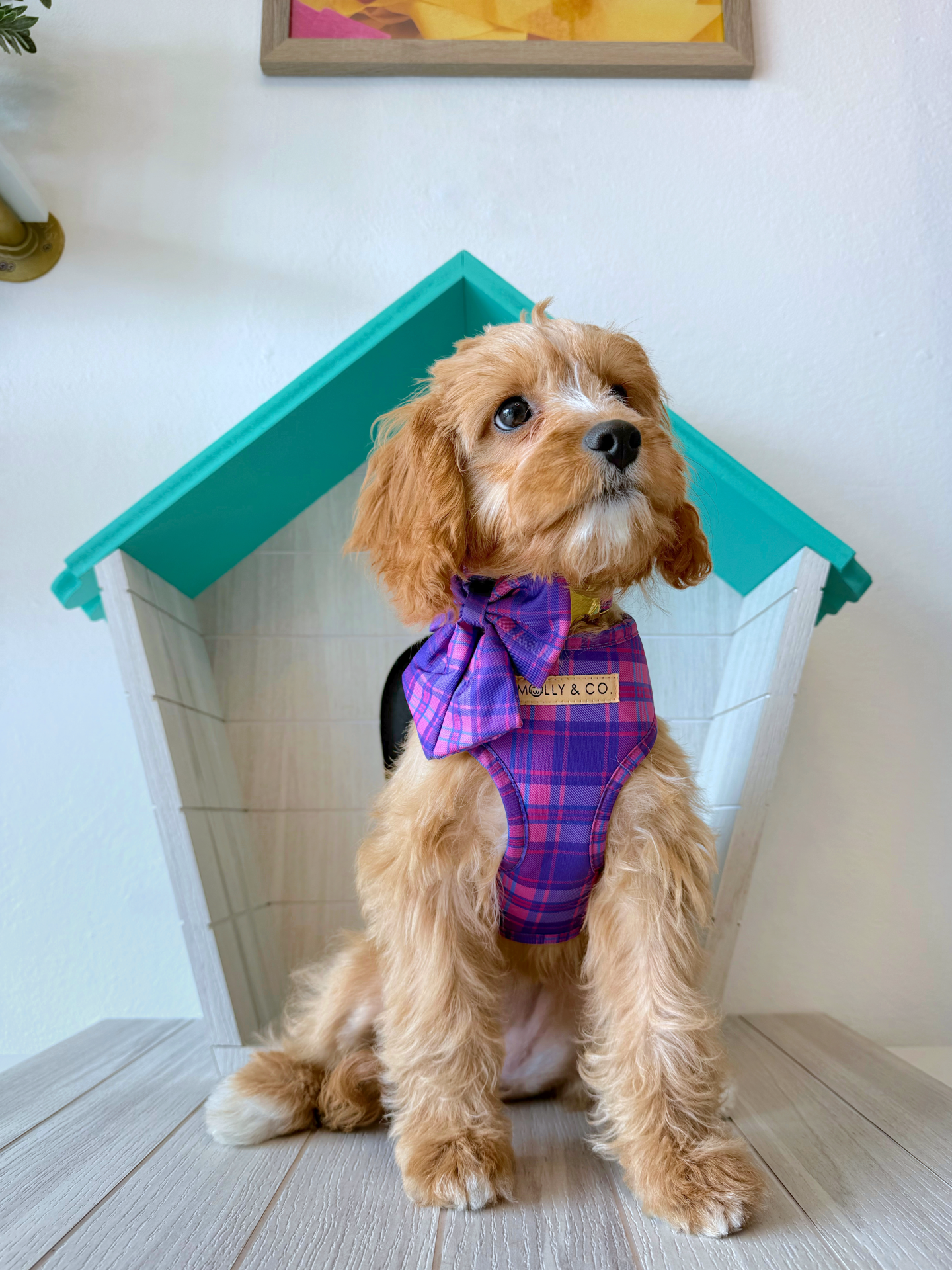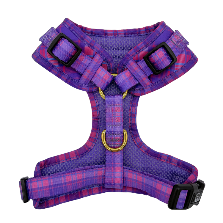 Get ready to turn heads with our Pinkberry Plaid Adjustable Harness! This charming harness features a pink and purple plaid that’s perfect for stylish pups. With its comfortable fit and secure design, your furry friend will not only look adorable but also feel great during every walk.