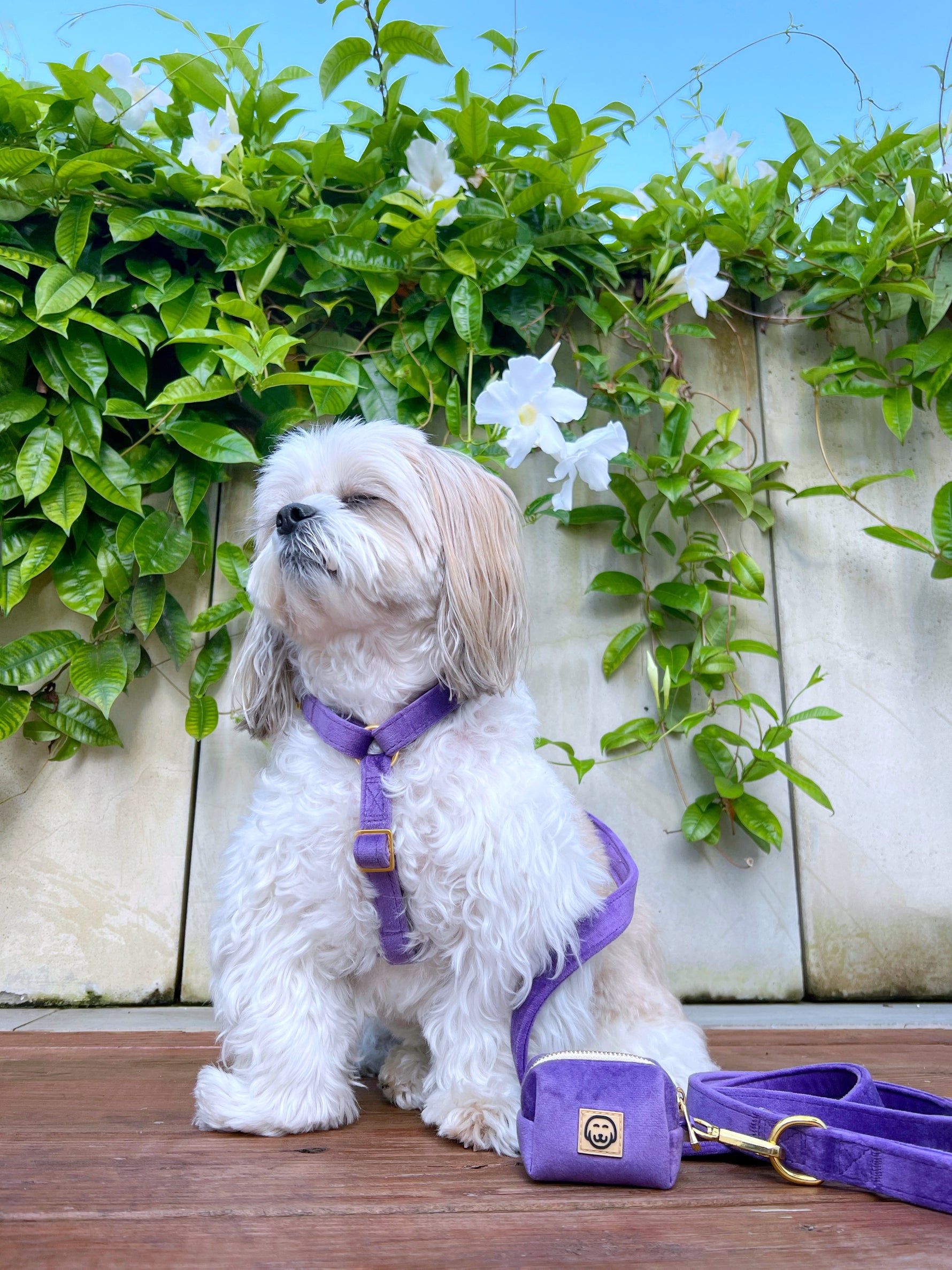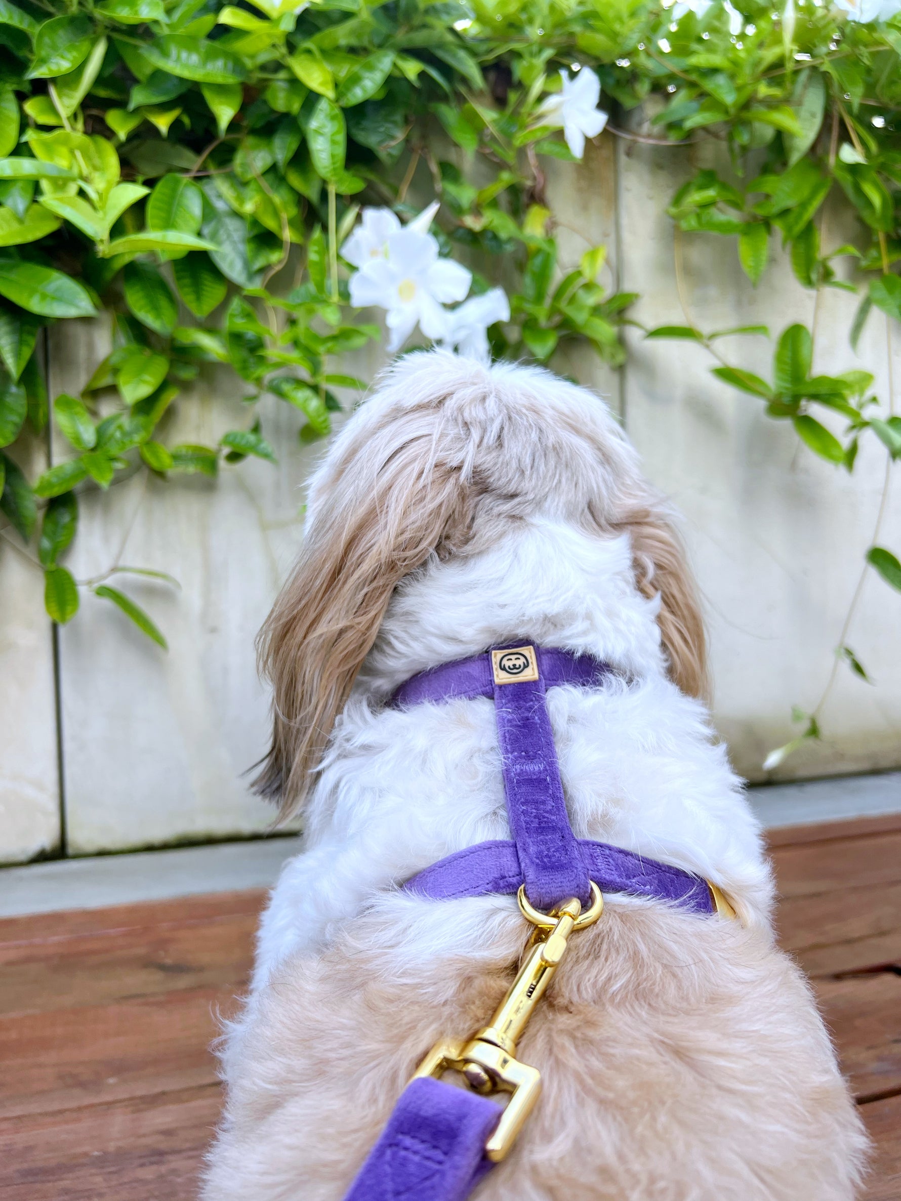 Your pup will be ready to walk in style with our Violet Velvet strap-style fully adjustable harness! This harness gives your pup a Molly & Co. original design that is comfortable, sturdy and fashionable.